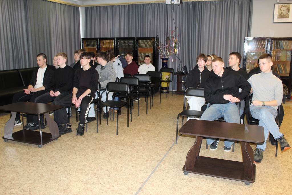 25 февраля в библиотеке состоялось мероприятие, посвящённое Дню защитника Отечества. Участниками стали студенты Техникума промышленности и транспорта г. Камышлов, для которых была подготовлена насыщенная интерактивная программа под названием «Офицерский час: Честь. Мужество. Призвание».