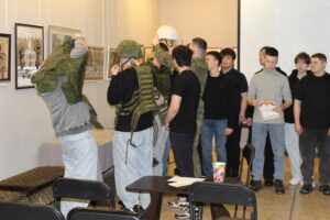 Кульминацией встречи стала возможность примерить настоящую военную экипировку, которую гость привёз с собой. Ребята с энтузиазмом фотографировались и обсуждали свои ощущения.